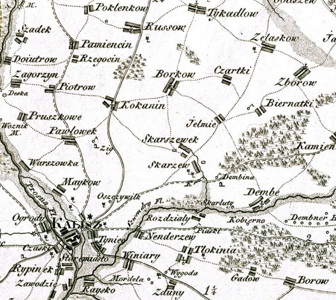 Rozdżały, Skarszewek, Borków na mapie D. Gilly