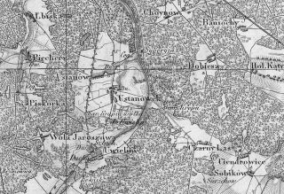 Ustanówek, majątek Nyków h. Ostoja w XIX w. Topograficzna Karta Królestwa Polskiego (fragment). Zbiory Biblioteki Uniwersyteckiej im. Jerzego Giedroycia w Białymstoku.