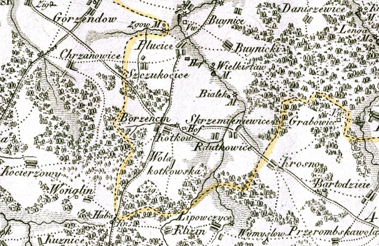 Plik:Kotków Wola Kotkowska Rdułtowice Plucice Mapa Gilly fragment.JPG